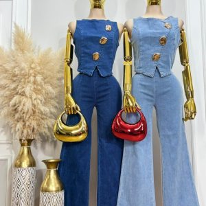 CONJUNTO CON DISEÑO TIPO ENCAJE BOTONES ASIMETRICOS
