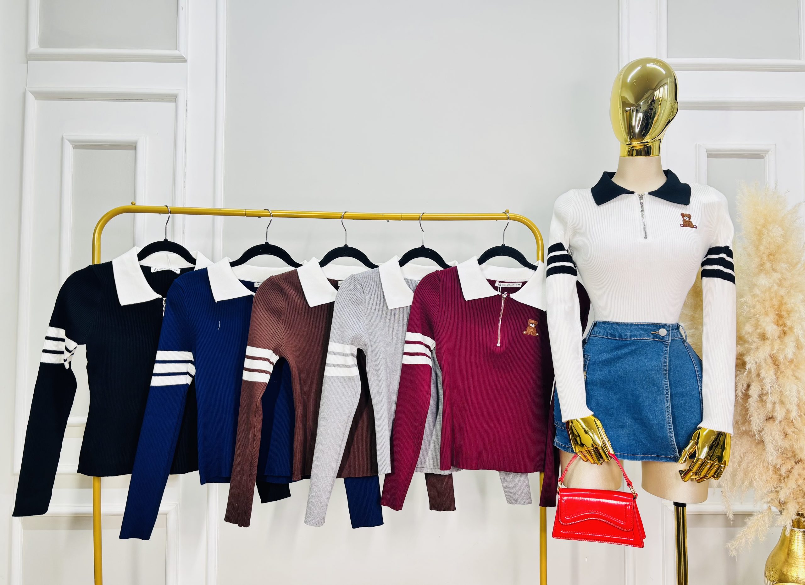 Blusa femenina, confeccionada en tejido acanalado suave y elástico de excelente calidad con ajuste favorecedor. Presenta cuello tipo camisero en contraste y cierre medio frontal. Diseño con franjas deportivas en mangas y tierno bordado de osito en el pecho, que aportan un toque juvenil y moderno. Una prenda casual y versátil. 💕