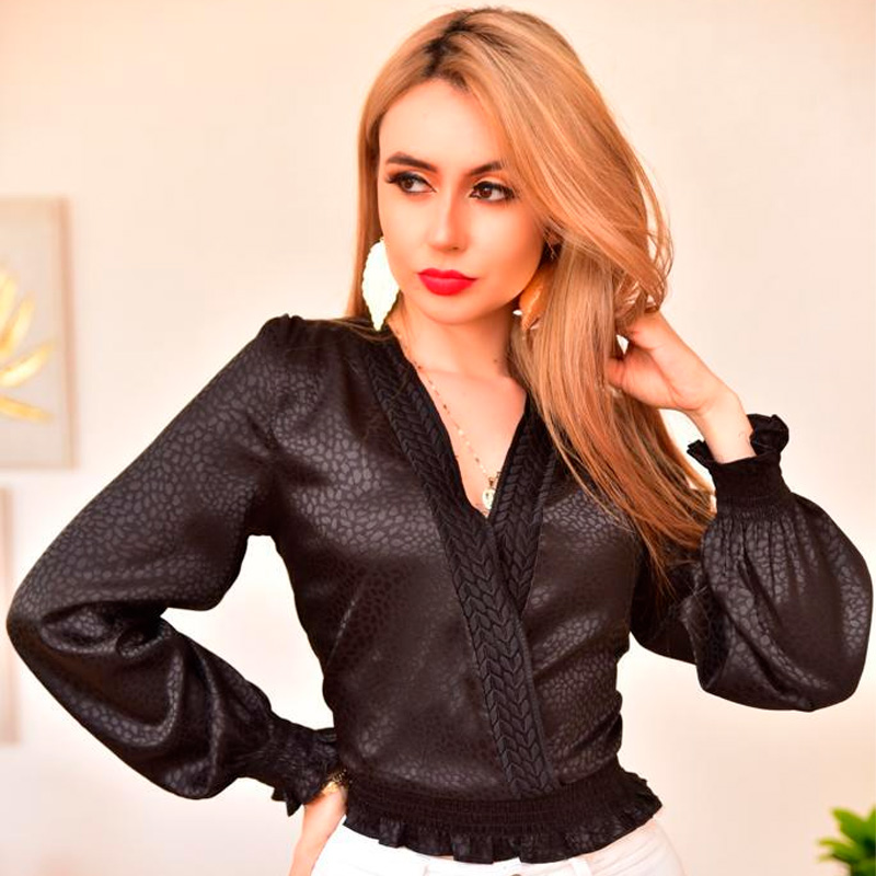 Bellísima blusa satinada animal print con detalle bordado en v. Elástico en cintura, con excelente corte te hará lucir una lindisima figura. Va bien con todo.