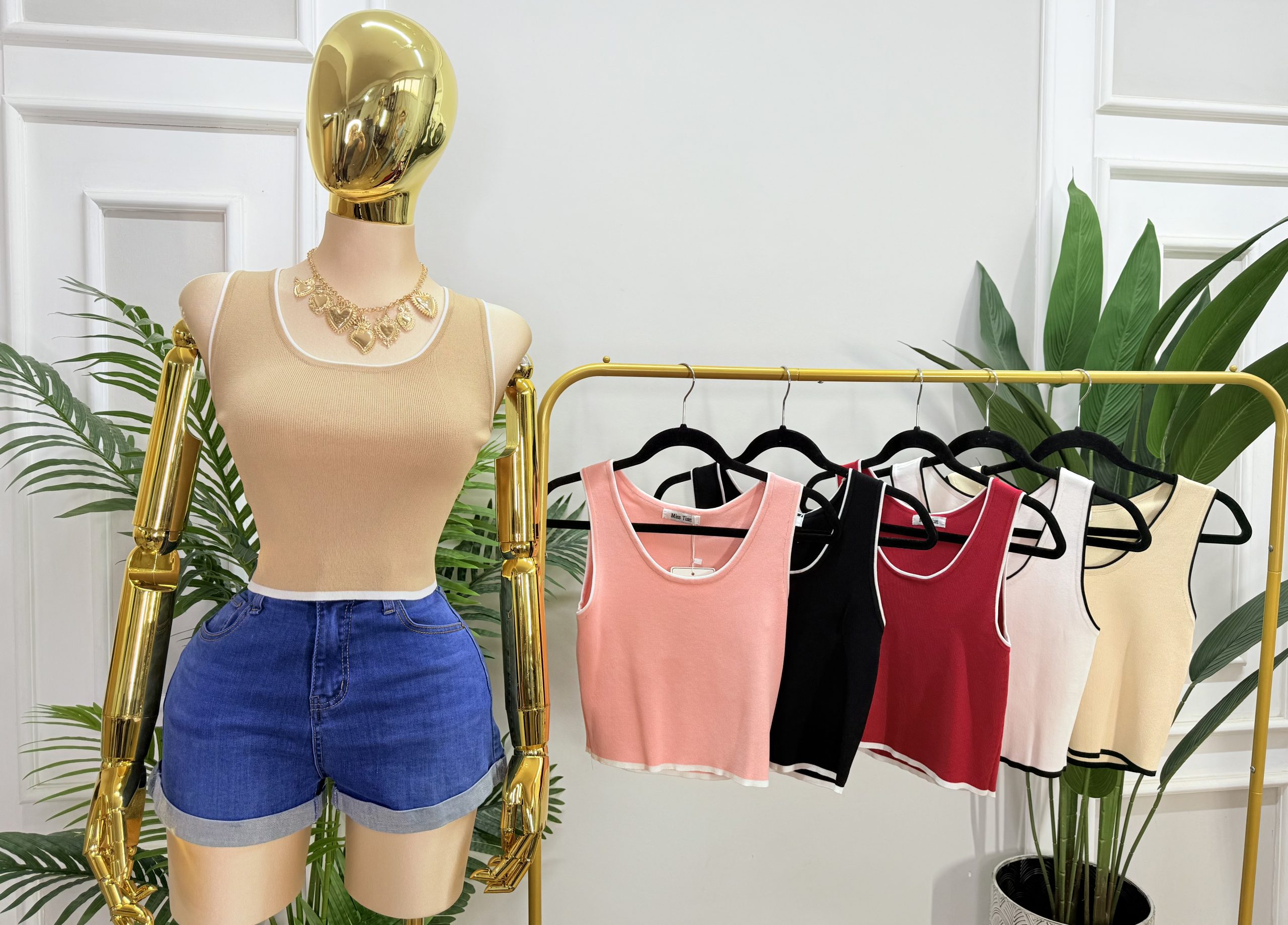 🩷 BLUSA BÁSICA CON RIBETES CONTRASTANTES