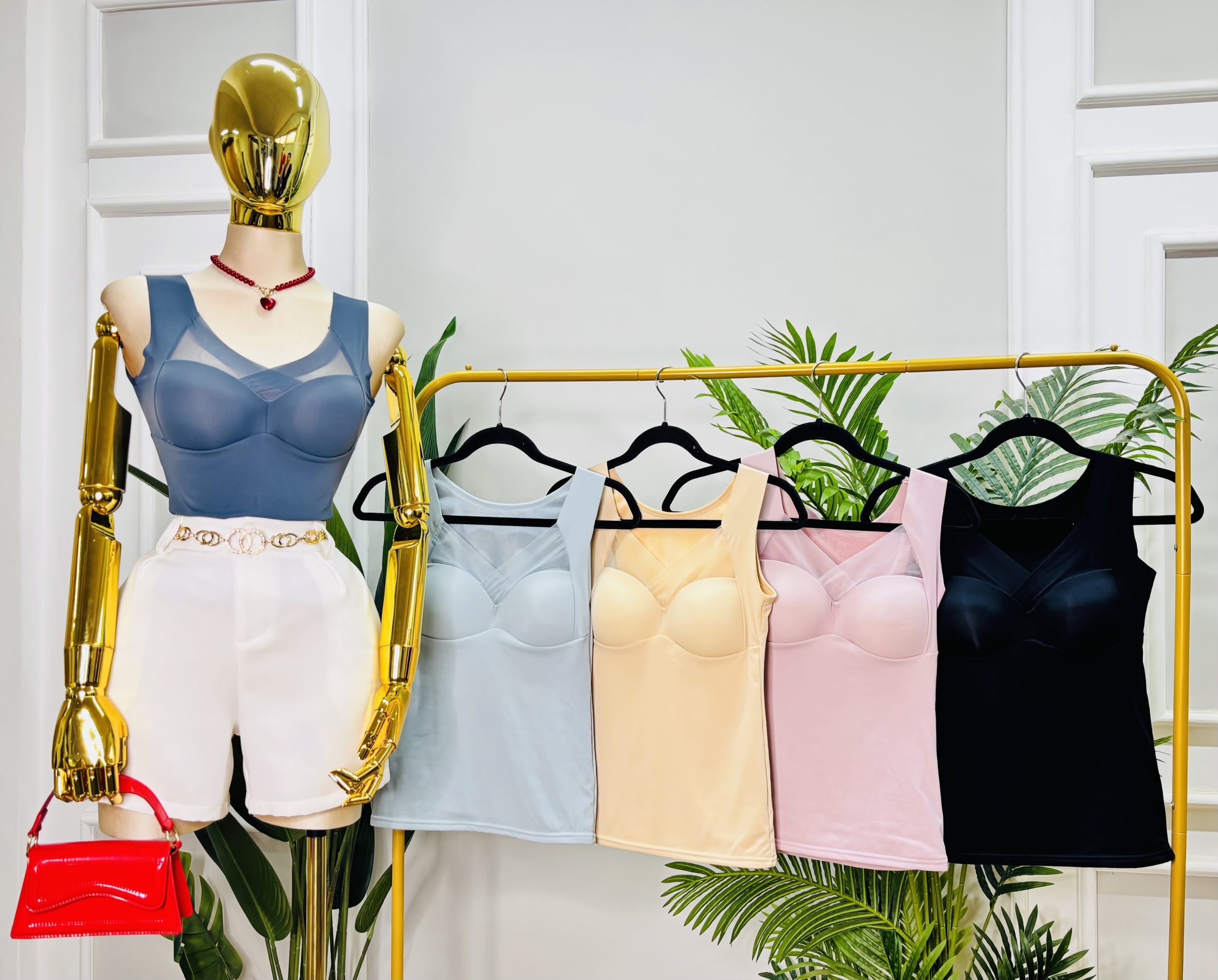 Blusa moldeadora que combina funcionalidad y estilo en una sola prenda. Diseñada con copas preformadas y soporte integrado, ofrece realce y definición al busto sin necesidad de brasier adicional. Su escote en “V” con malla transparente aporta un toque elegante y femenino, mientras que sus tirantes anchos brindan mayor comodidad. Afelpada por dentro.