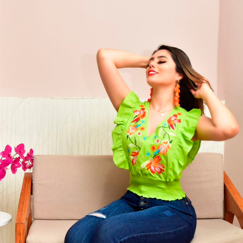 Bellísima blusa con bordado, corte cruzado con elástico fruncido en cintura que estiliza muchísimo esta área haciendo lucir más pequeña y estilizada.( abarca de 5 a 7)