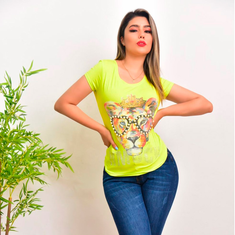 BLUSA DE ALGODÓN ESTAMPADO DE CHEETA Y PERLAS