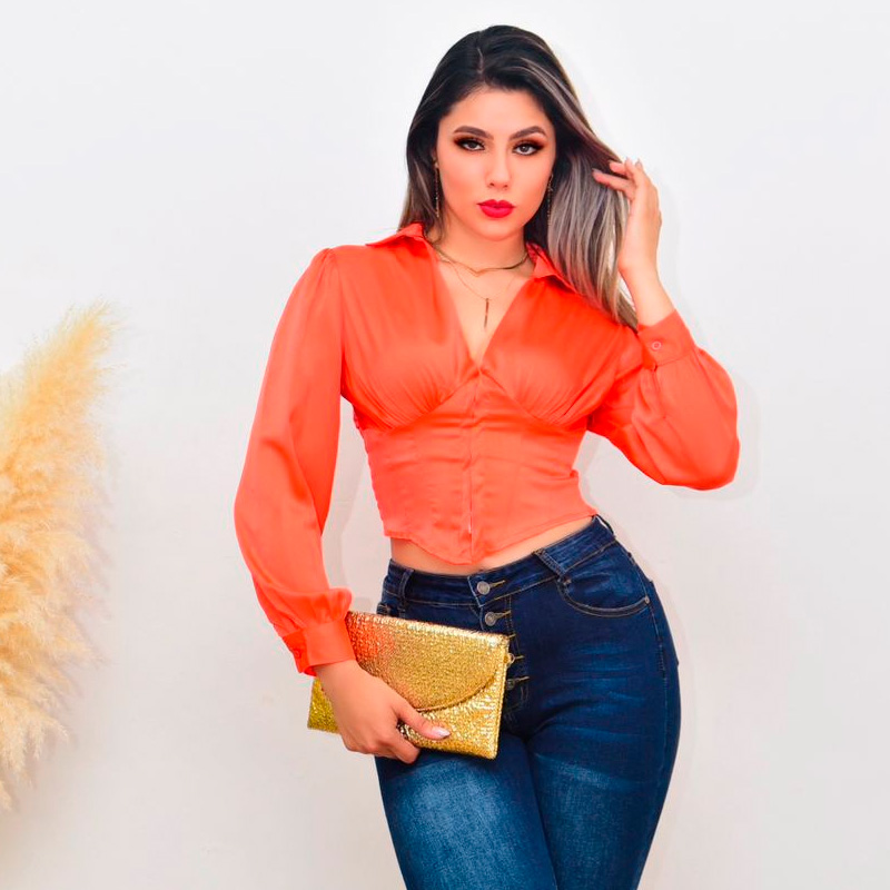 Te hará lucir una cintura envidiable. Escote en V. Elástico corrugado en espalda.