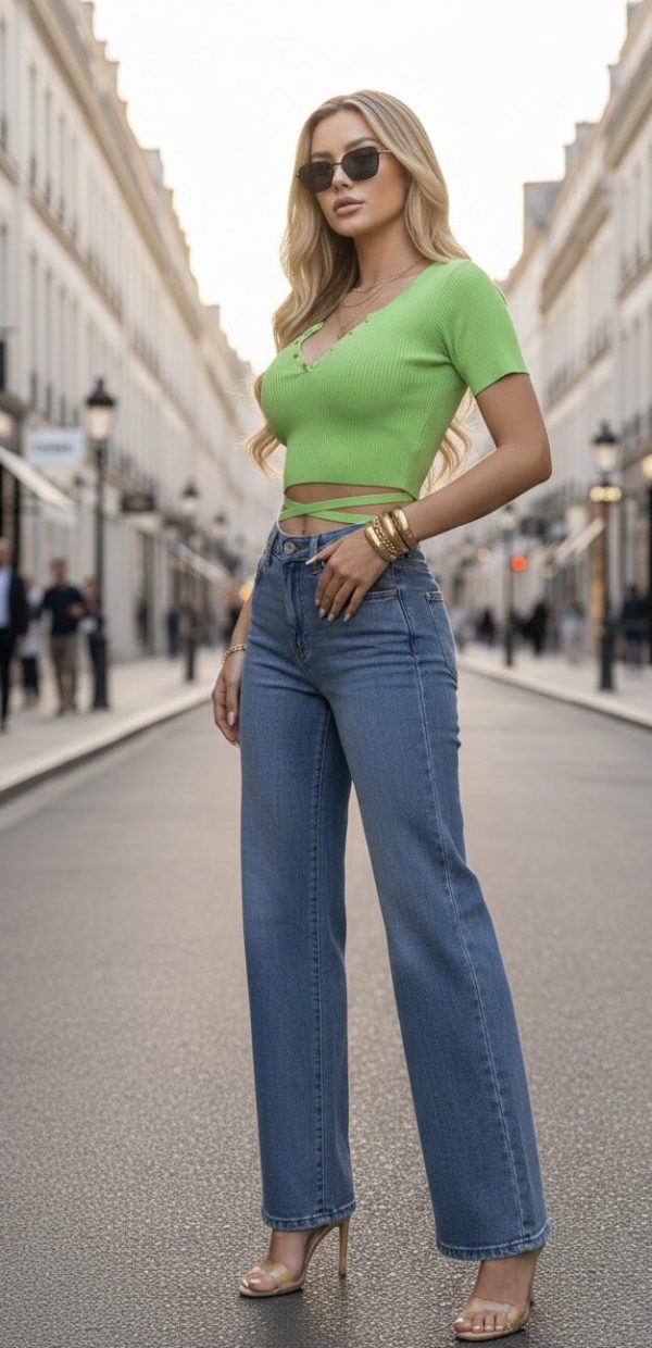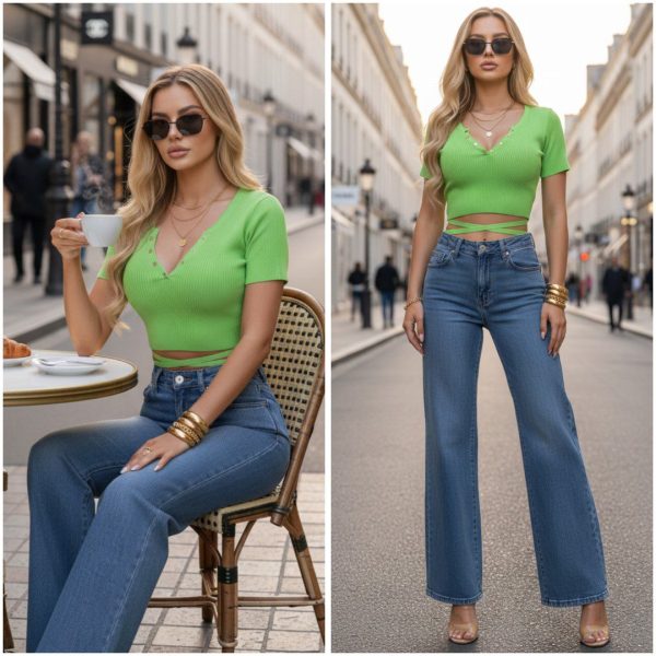 🌈 BLUSA CROP ACANALADA CON BROCHES Y CINTAS