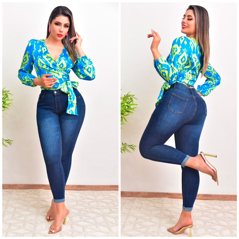 Increíble corte cruzado. Nudo ajustable. Estampados electrizantes contrastantes. Manga larga con elástico en puños