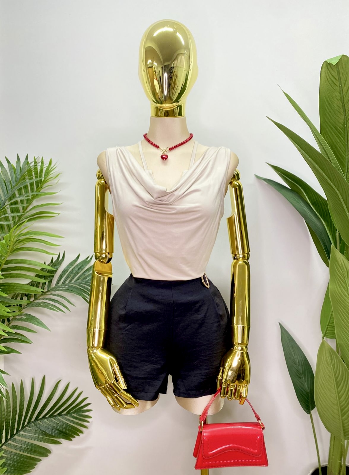 Blusa confeccionada en viscosa con stretch, suave y fresca. Con caída fluida que estiliza y favorece cualquier tipo de cuerpo. Escote drapeado que aporta un toque femenino y delicado. Tirantes finos con amarre en cuello para ajustar. Ideal para lucir sofisticada y fresca.