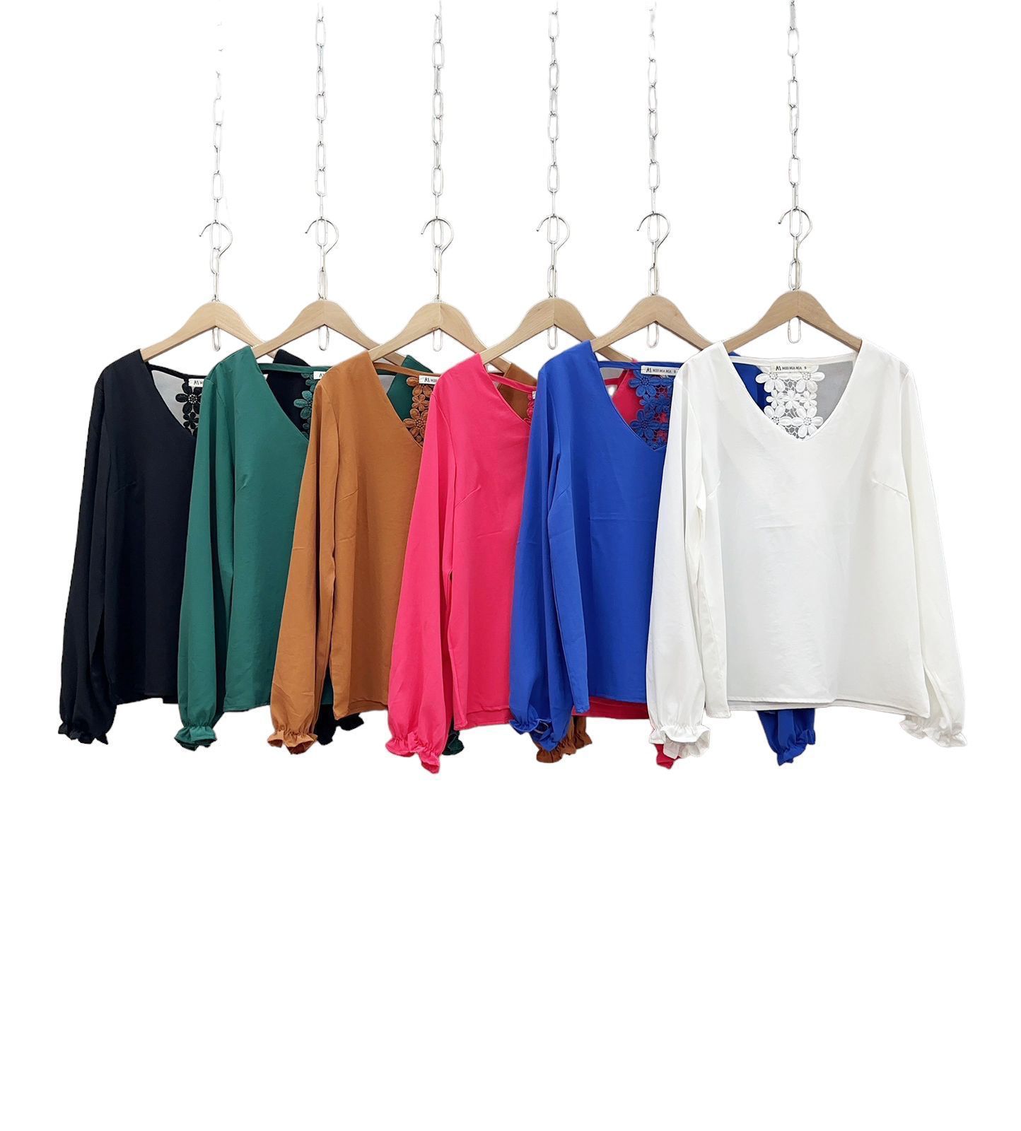 Blusa ligera con escote en “V”. Escote en espalda con detalle de flores bordadas. 📌 Corte amplio IMPORTACIÓN CALIDAD 💎💎💎💎💎💎💎💎