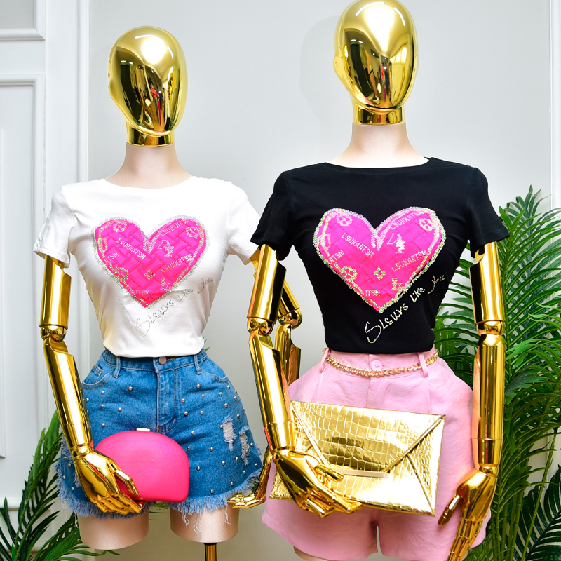 Blusa con aplicación de corazón efecto listones al frente. Aplicaciones de brillos. Cuello redondo, stretch. Algodón 📌 Corte fiel a la talla IMPORTACION CALIDAD 💎💎💎💎💎💎💎💎