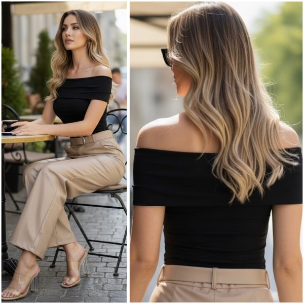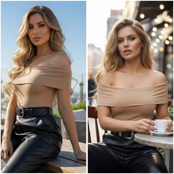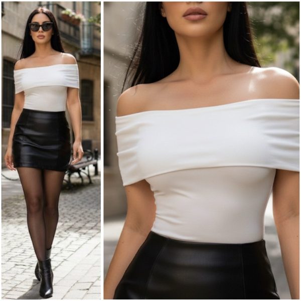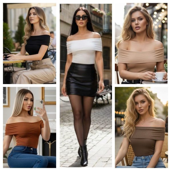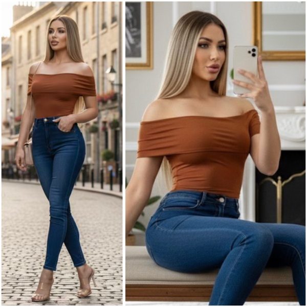 Blusa lisa de hombros descubiertos, que realza el cuello y aporta un toque femenino y moderno. Ideal para combinar con jeans o faldas para un look casual y chic. 💕