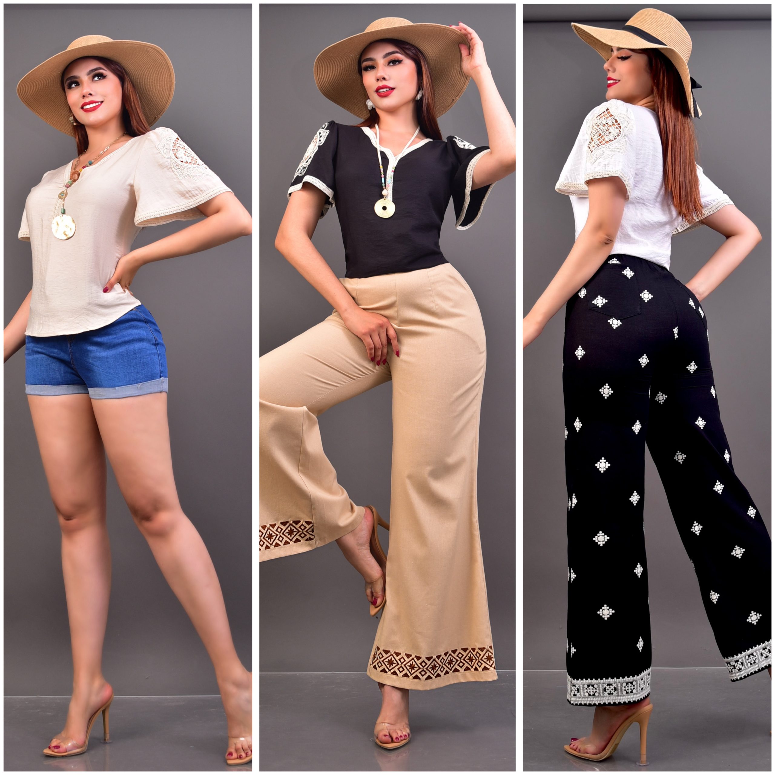 Hermosa blusa con escote V decorado con bordados estilo crochet al igual que las mangas, dándole un toque único y boho-chic.