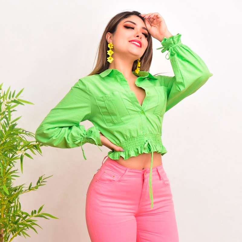 Blusa de tela mesh, con forro en zona del torso.Mangas traslucidas tipo obispo. Increíble detalle de bordado de hilos