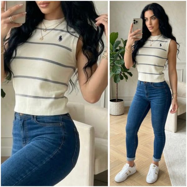 🤍🦩 BLUSA SIN MANGAS DE RAYAS