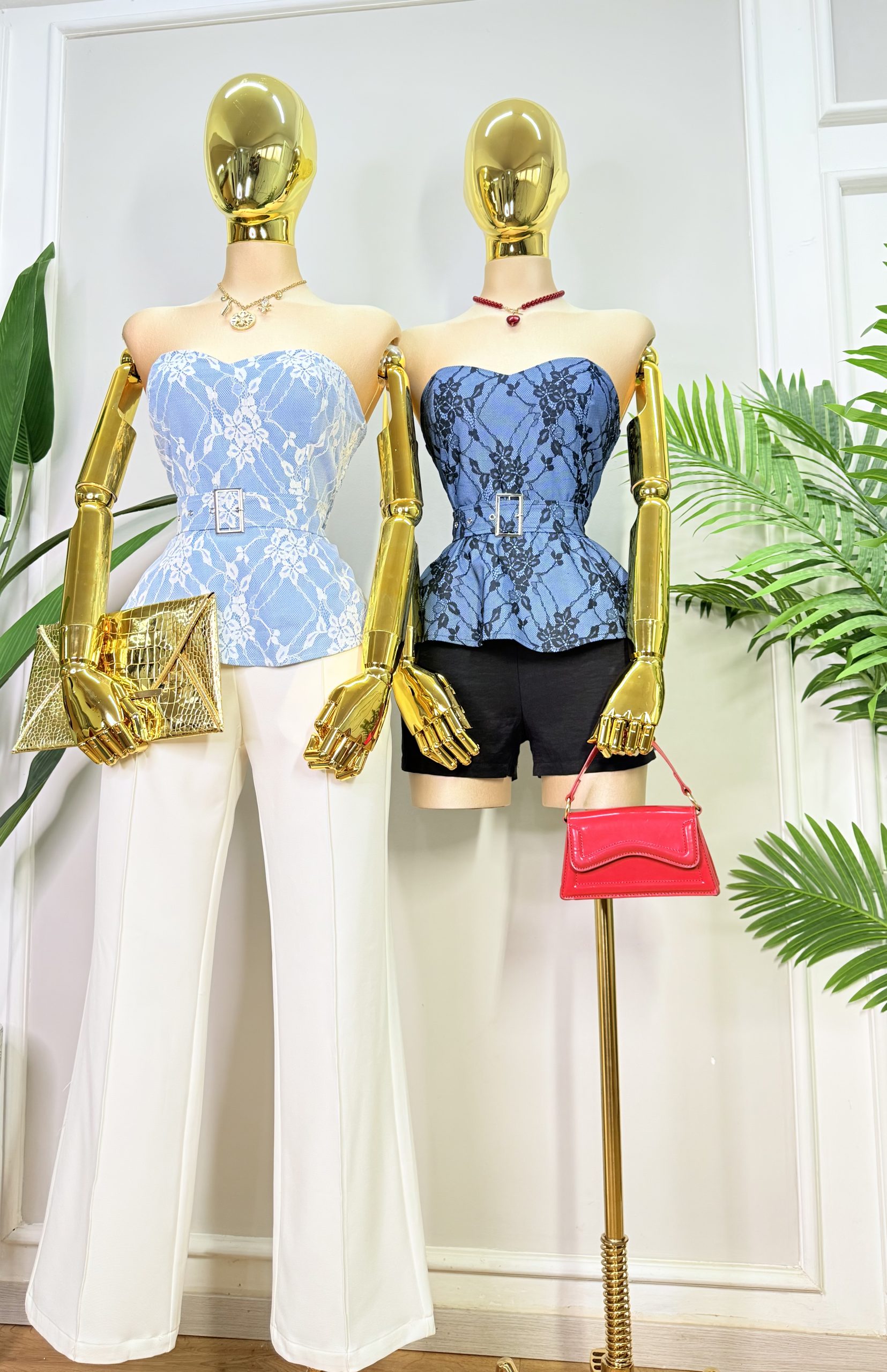 Blusa strapless con escote corazón y delicado diseño con encaje floral en contraste. Corte peplum que estiliza la cintura, incluye cinturón ajustable para un fit perfecto. Elástico fruncido en espalda. Ideal para salidas casuales, citas y eventos semi-formales.