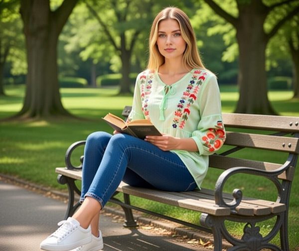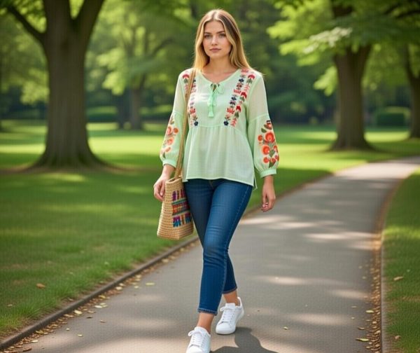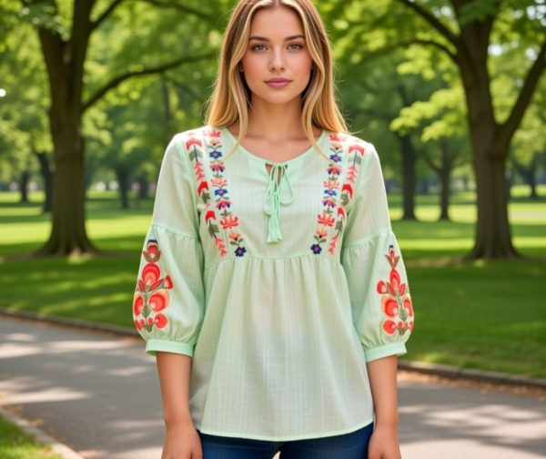BLUSA TIPO LINO CON BORDADOS EN PECHO