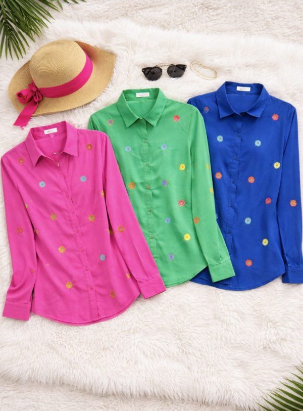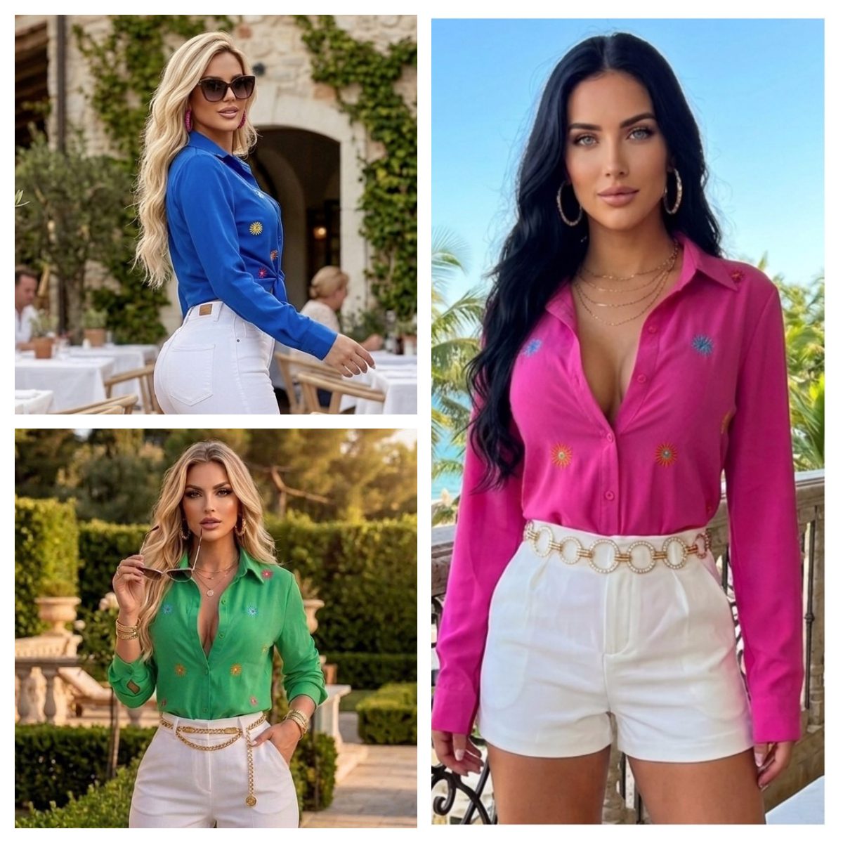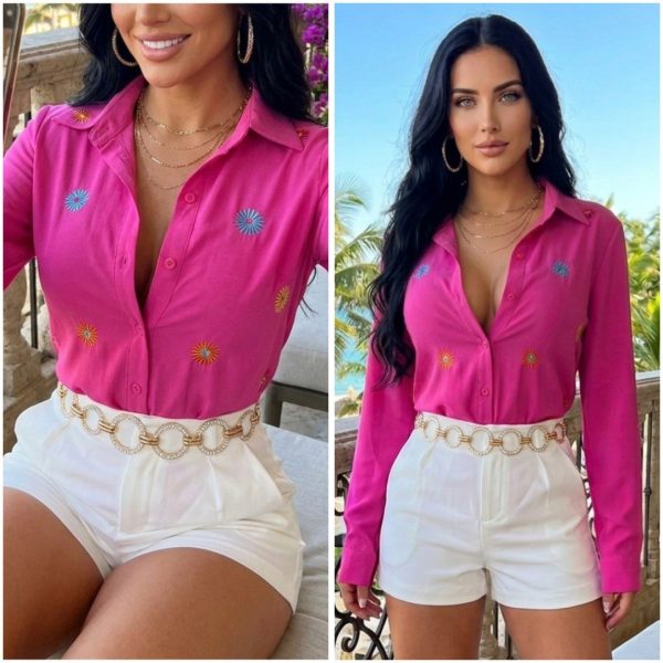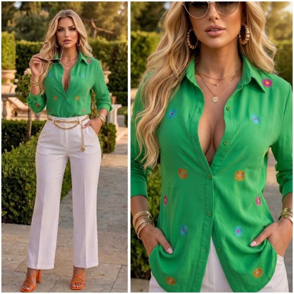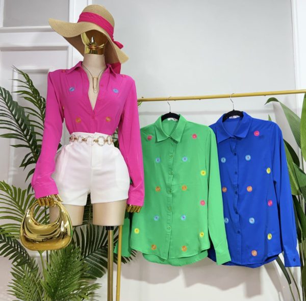 🎨☀️ CAMISA CON FLORES BORDADAS
