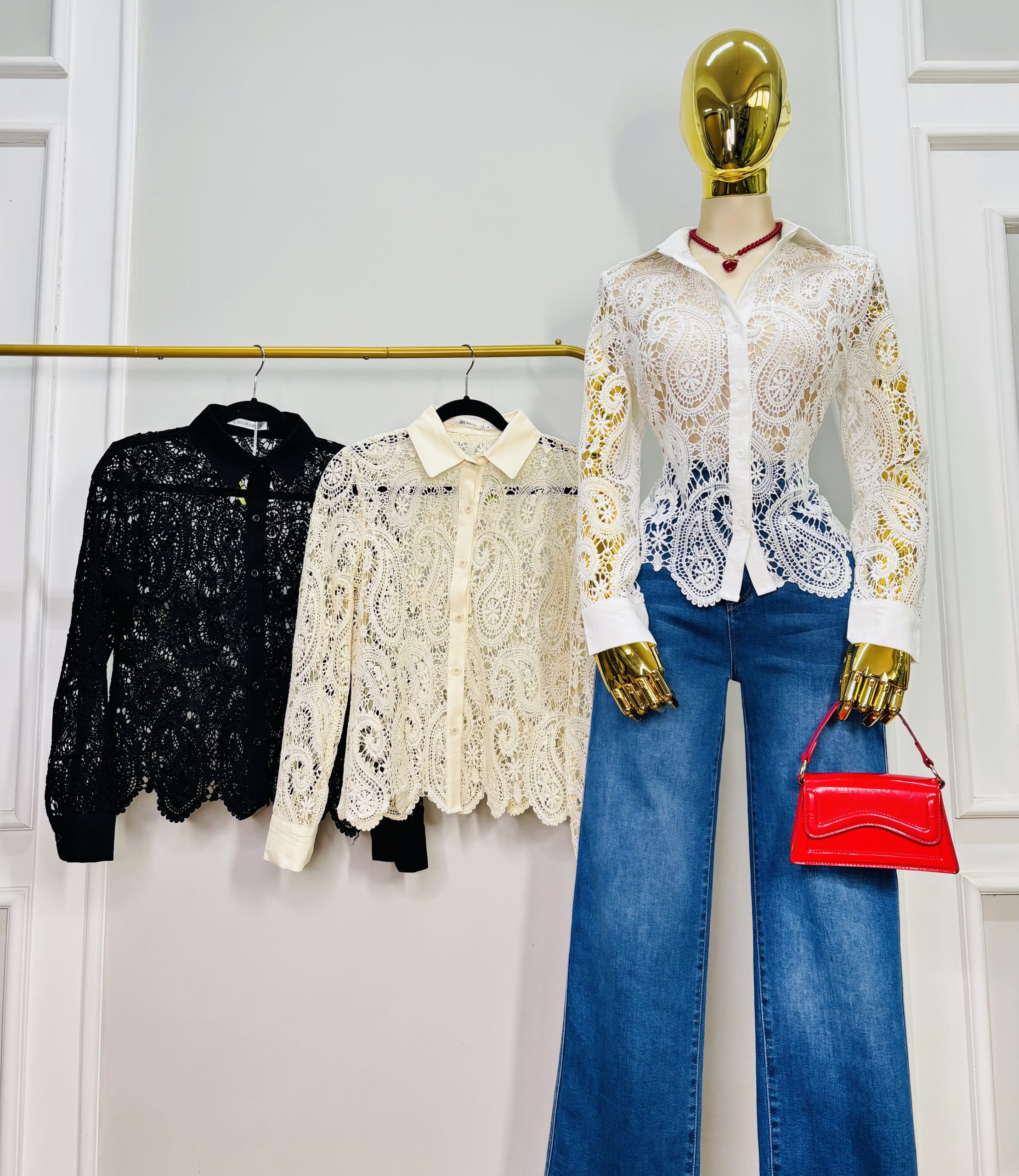 🌸✨ CAMISA DE ENCAJE BORDADO