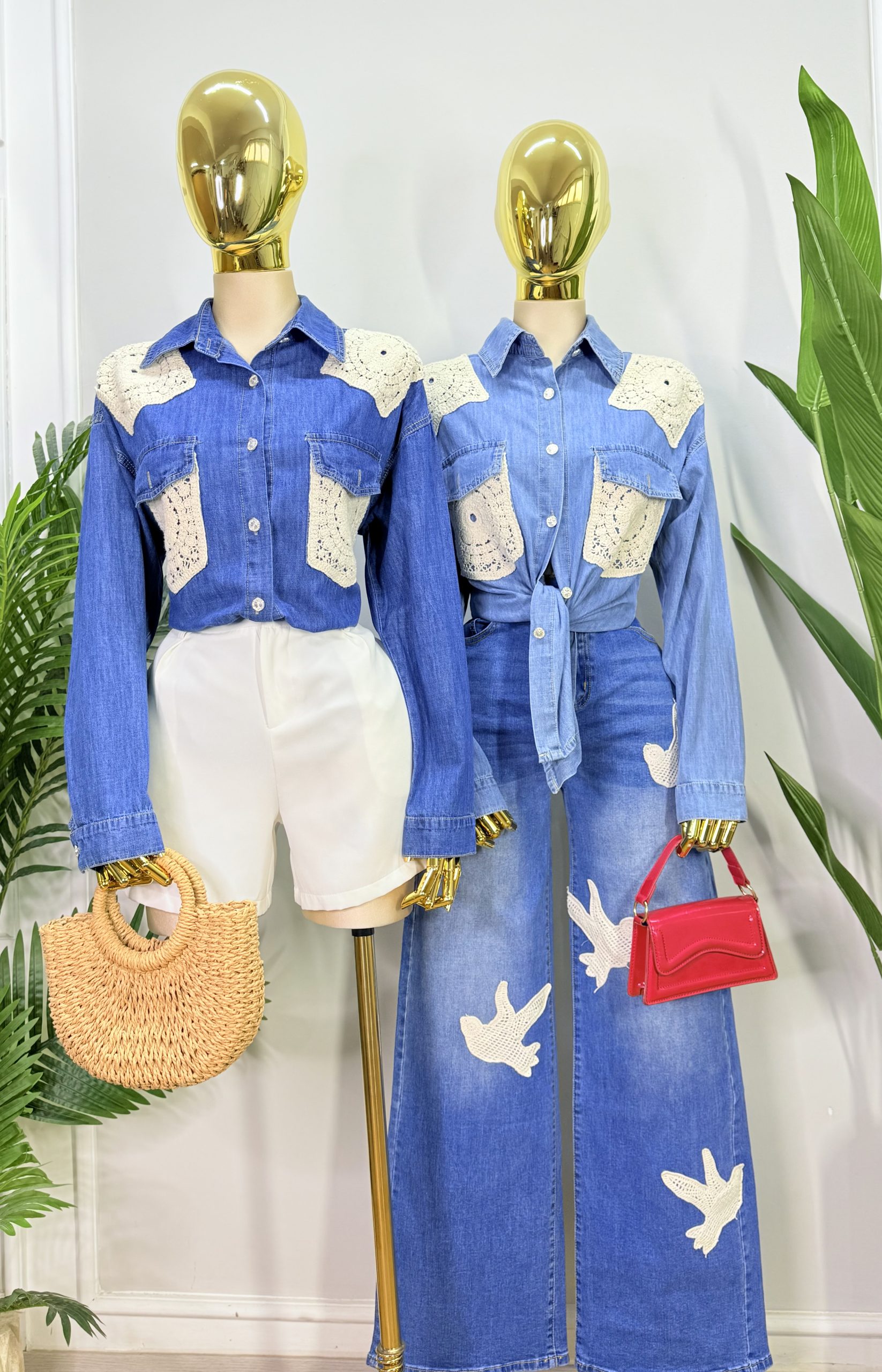 💕 CAMISA DENIM CON DETALLES BORDADOS