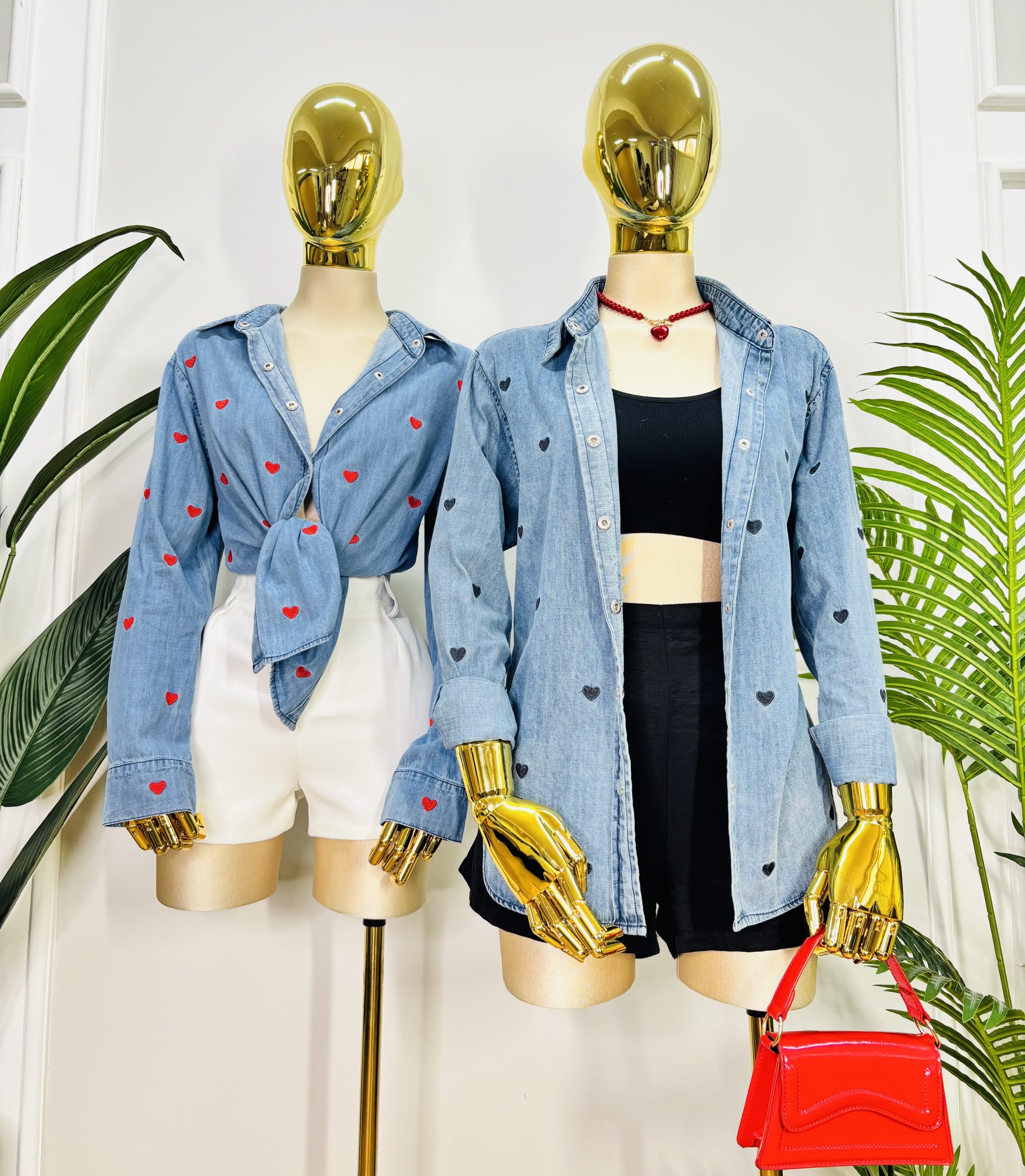 ❤ CAMISA DENIM CORAZONES BORDADOS