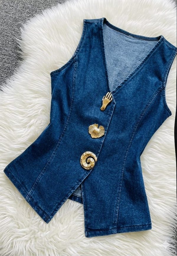 Escote en “V”. Broches asimétricos que le dan un toque único y llamativo. ✨