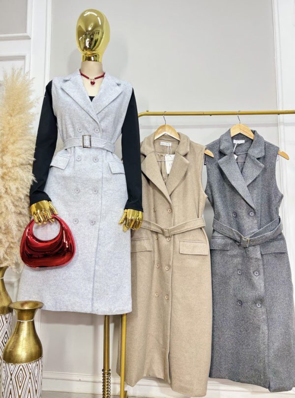 ☕🍂 CHALECO LARGO CON CINTURON