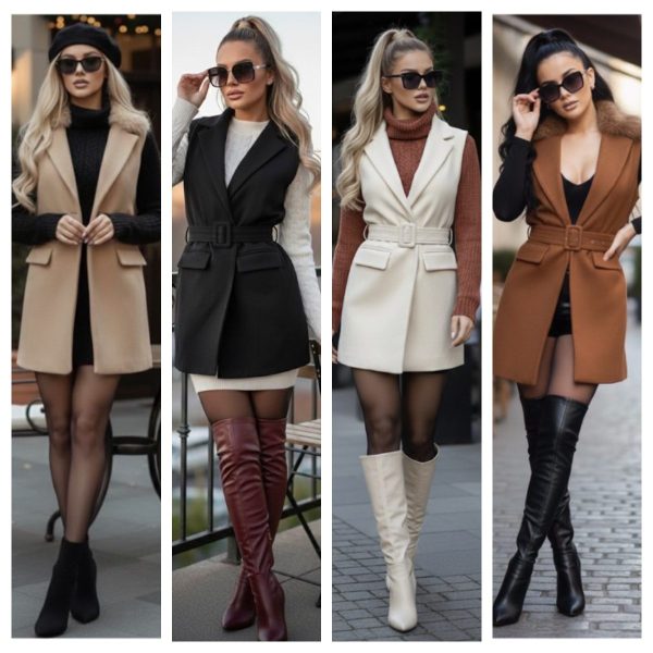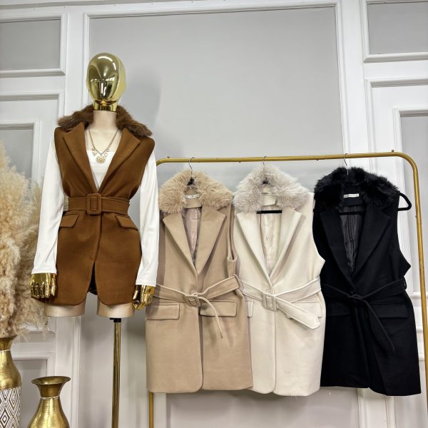 Chaleco largo con corte moderno y elegante. Incluye estola desmontable y cinturón a juego para ajustar y resaltar la cintura. Solapa tipo sastre que aporta un toque sofisticado. Bolsillos aparentes. Versátil, cómodo y fácil de combinar.