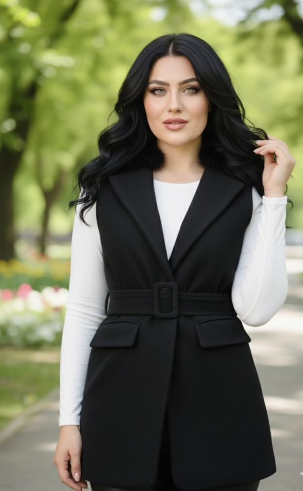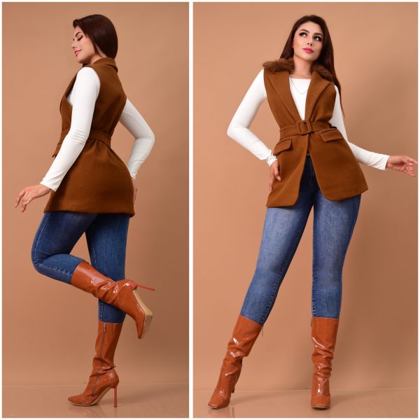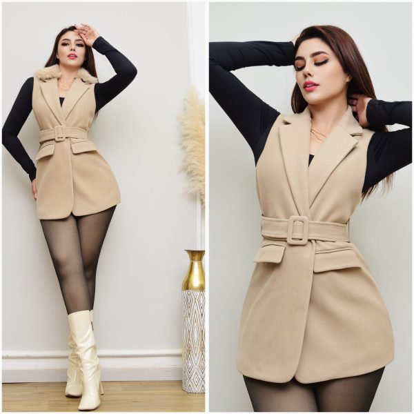 Chaleco largo con corte moderno y elegante. Incluye estola desmontable y cinturón a juego para ajustar y resaltar la cintura. Solapa tipo sastre que aporta un toque sofisticado. Bolsillos aparentes. Versátil, cómodo y fácil de combinar. 💖
