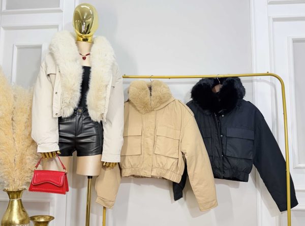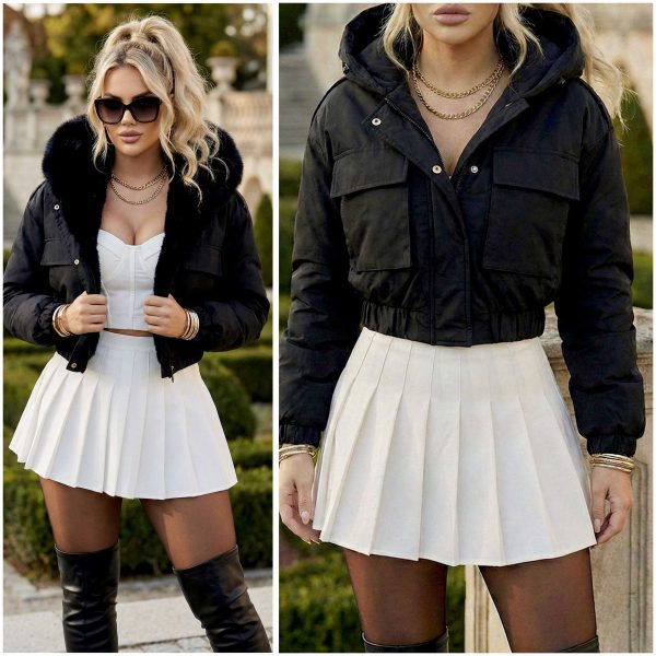 Chamarra corta de diseño moderno y acolchado, abrigador.