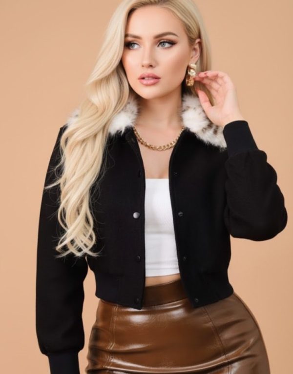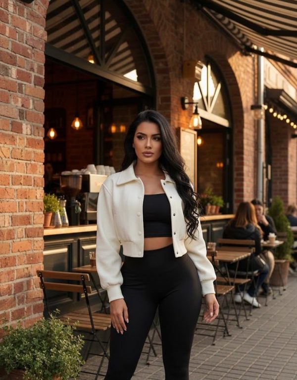 Chamarra corta estilo casual con estola estampada desmontable en contraste 🐆✨. Diseño moderno con botones de broche al frente, cintura y puños elásticos para mejor ajuste. Bolsillos laterales funcionales. Suave y cómoda, ideal para la temporada de frío. 🥰