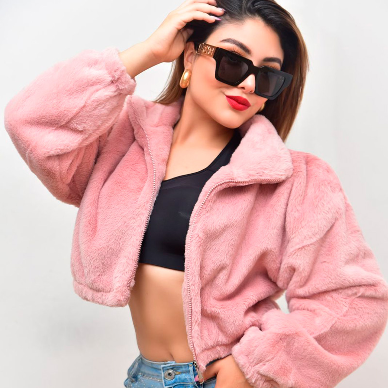 Chamarra corta. Elástico en cintura. Forro en mismo tono. Bolsillos laterales.