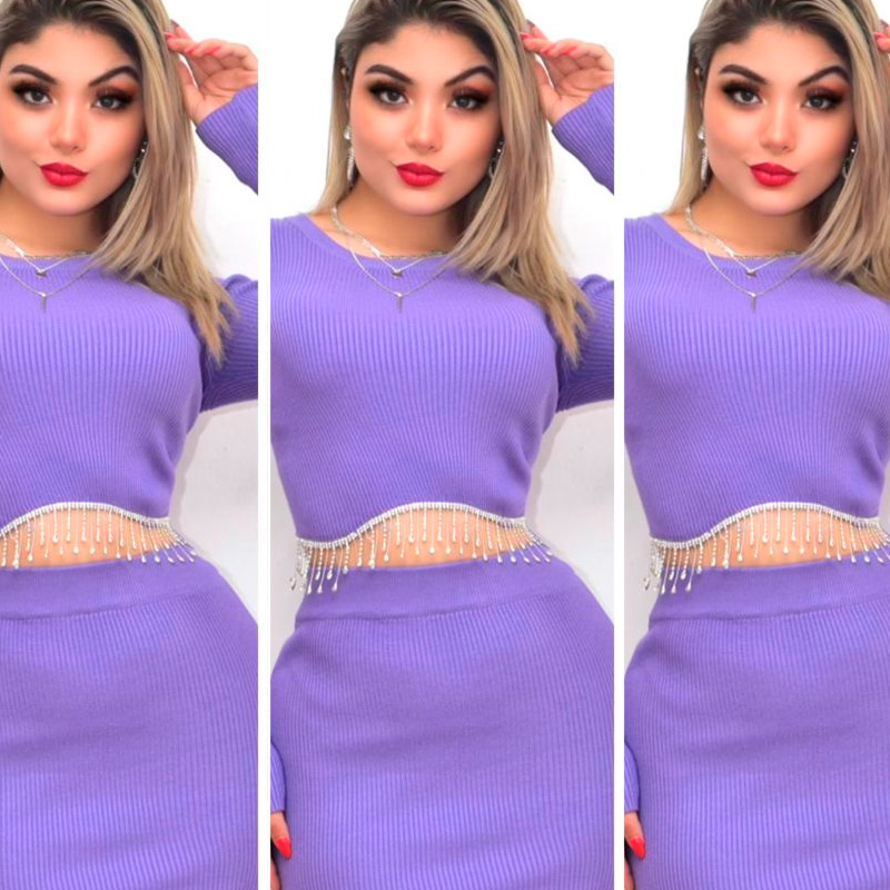 Blusa manga larga. Falda midi. Colgantes en ambas prendas abarca de 5 a 13