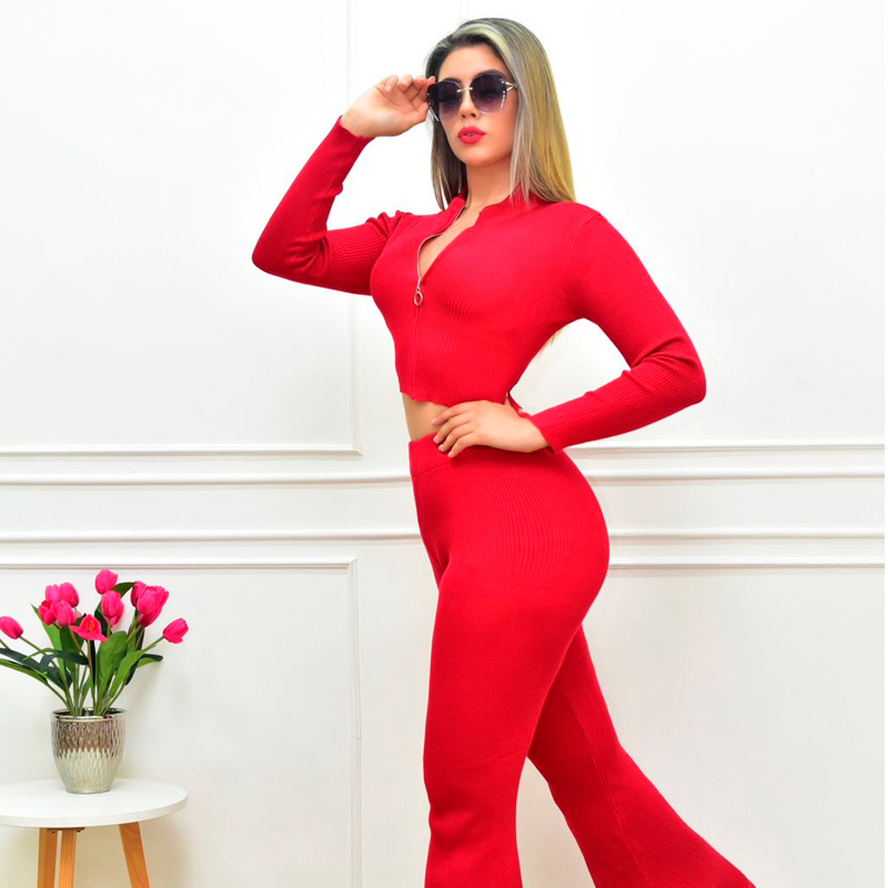 Blusa manga larga. Diseño con textura acanalada. Pantalón flare con elástico en cintura. Cierre plateado y cuello circular. abarca de 5 a 13