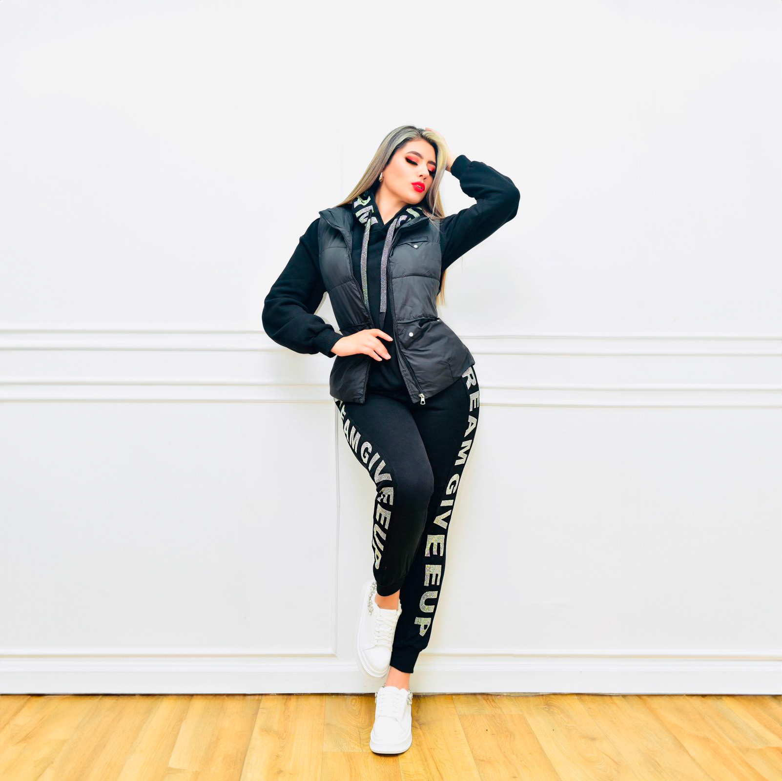 Conjunto de 3 PIEZAS Chaleco puffer con bolsillos laterales, cuello alto circular y cierre unicolor.