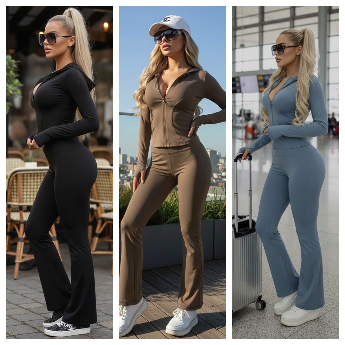 ✅Estilo versátil: El corte flare y la chamarra con cierre lo hacen perfecto tanto para un look deportivo como casual.