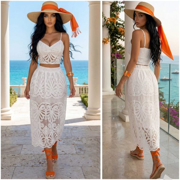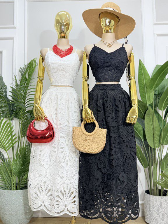 🌾🤍 CONJUNTO ELEGANTE DE FALDA TIPO GUIPUR