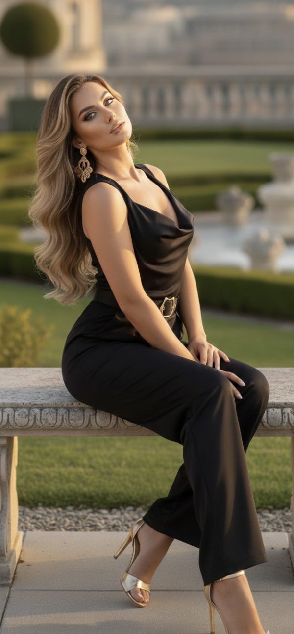 Conjunto tela satinada suave y caída fluida.