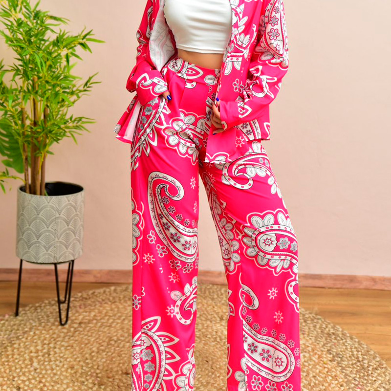 CONJUNTO PANTALON BLUSA Y TOP ESTAMPADO
