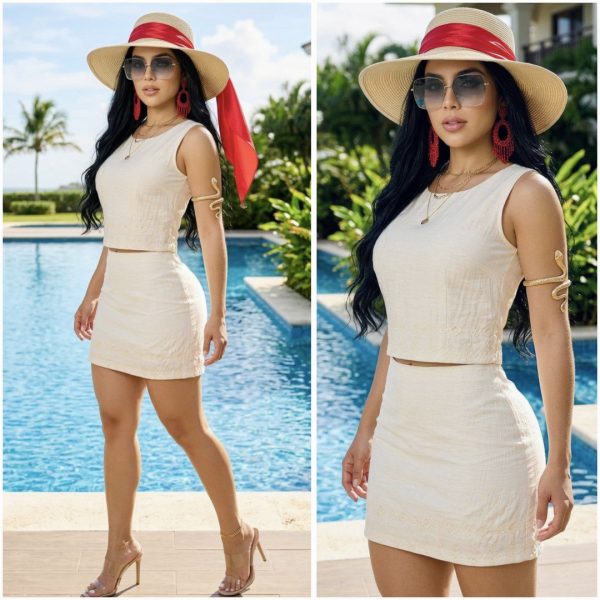 Conjunto en tela tipo lino, ligera y fresca. ☀️