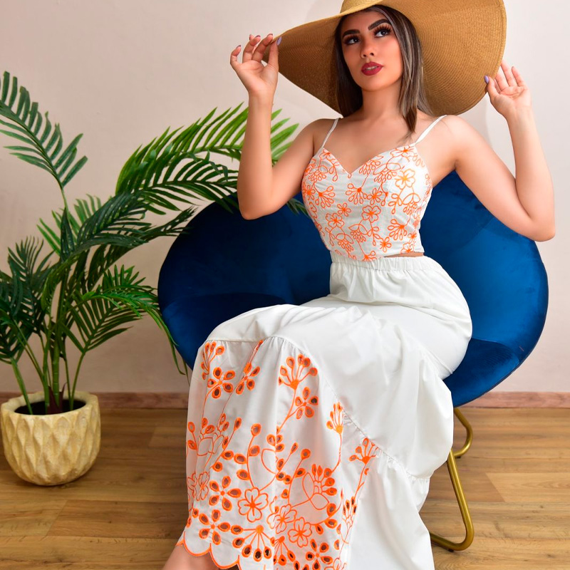 Top de tirantes ajustables. Elástico fruncido en espalda. Hermoso detalle de bordado floral.