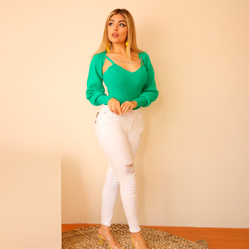 Conjunto de dos piezas. Blusa y Torera acanaladas.