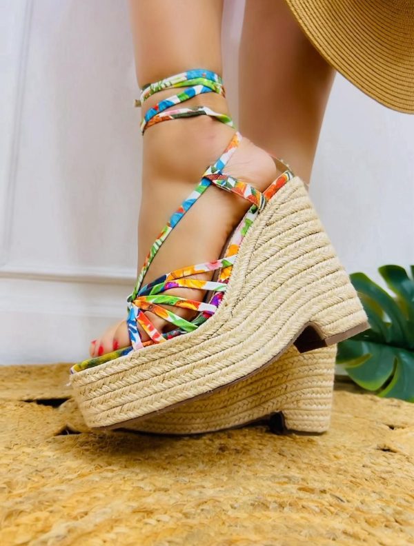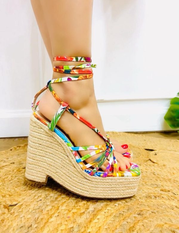 Sandalias de plataforma, estampado multicolor con correas para ajustar. Altura tacón : 13 cm. Altura plataforma: 4.5 cm