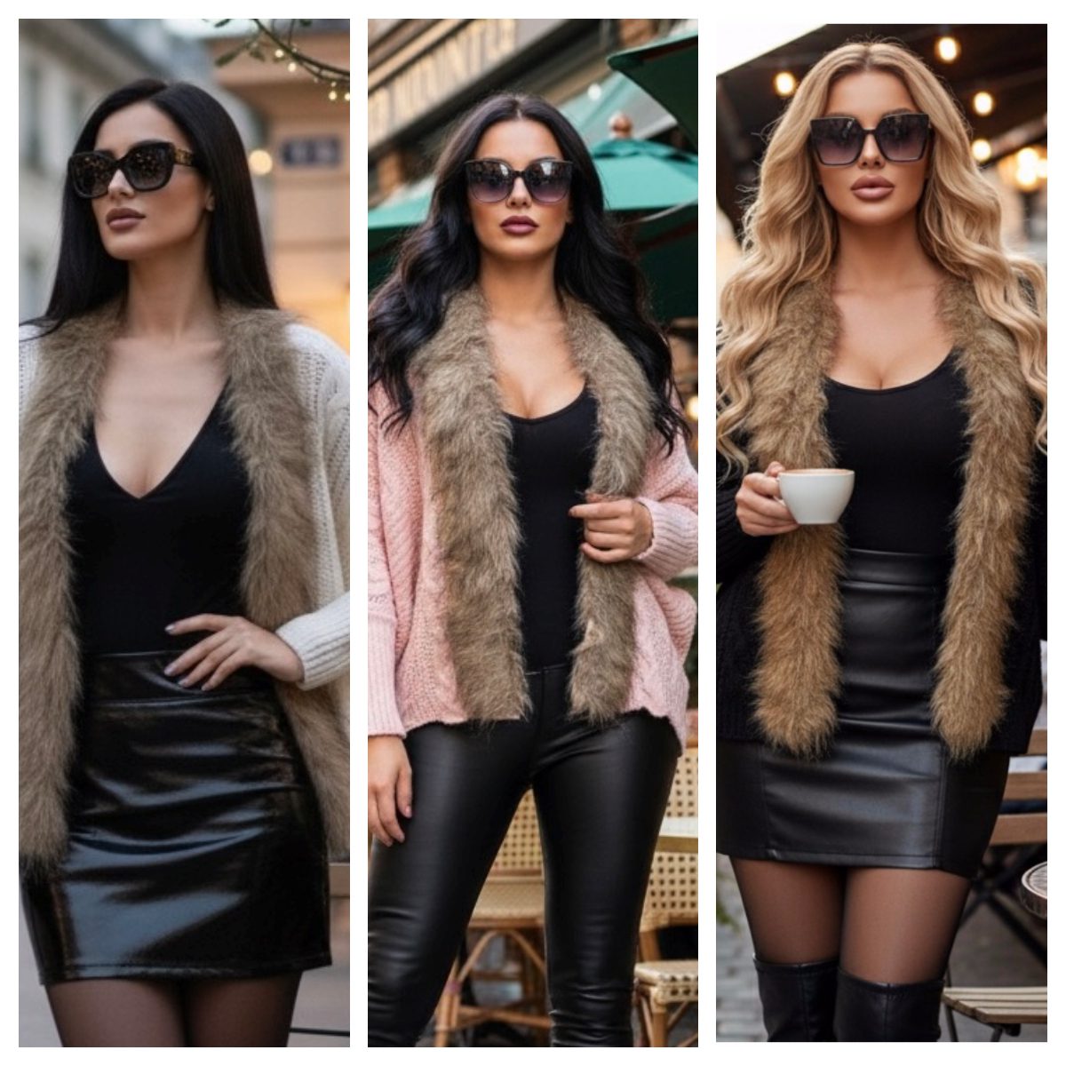 Ensamble tejido de punto trenzado con detalle de peluche en el borde frontal. Diseño abierto al frente, ideal para usar sobre tops o blusas ligeras. Mangas con acabado ajustado en los puños.
