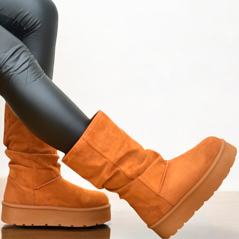 Bota invernal, forro aborregado. Diseño drapeado en caña. Plataforma. Altura plataforma: 5 cm IMPORTACIÓN USA 🇺🇸