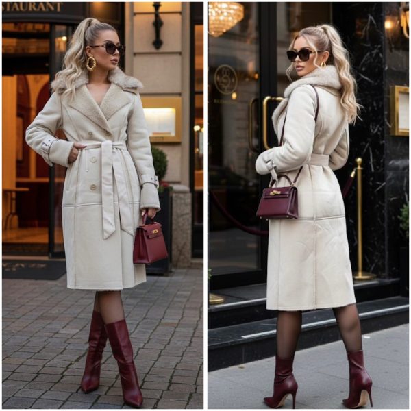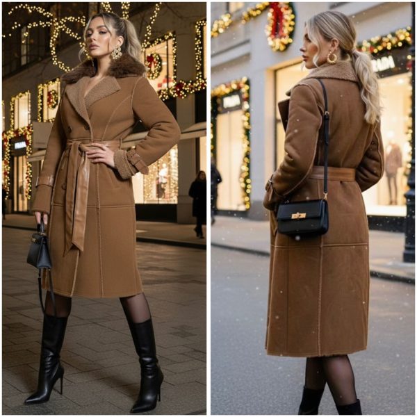 Gabardina larga estilo premium con forro aborregado que la hace súper calientita y perfecta para invierno. ❄ Cuenta con solapa amplia y estola desmontable.