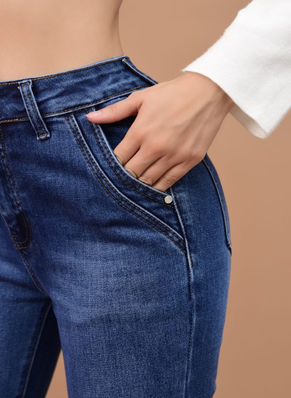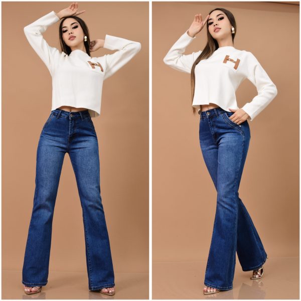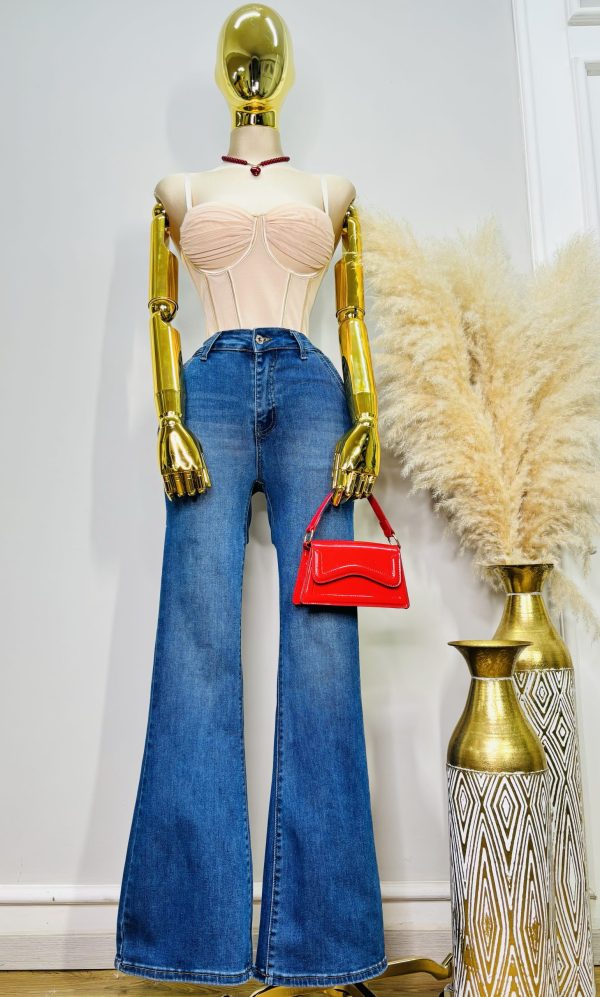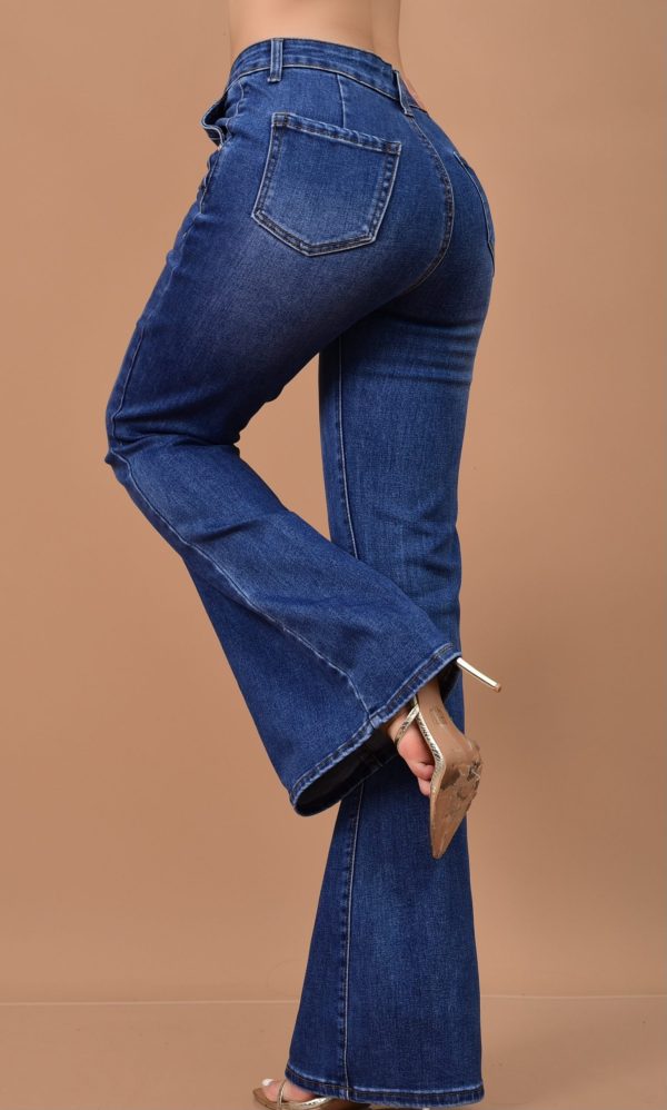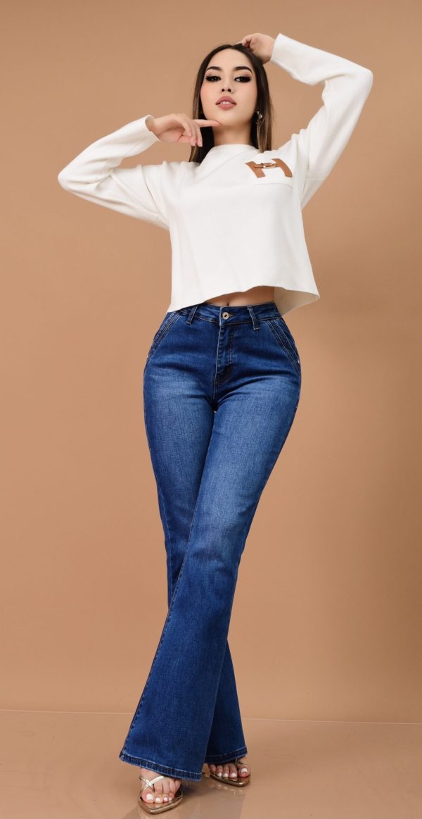 Jeans corte acampanado. Tiro alto. Diseño favorecedor para estilizar la figura. Confeccionado en mezclilla semistertch de alta calidad. Bolsillos delanteros y traseros funcionales. Un básico versátil y moderno que combina perfecto con todo. 🥰