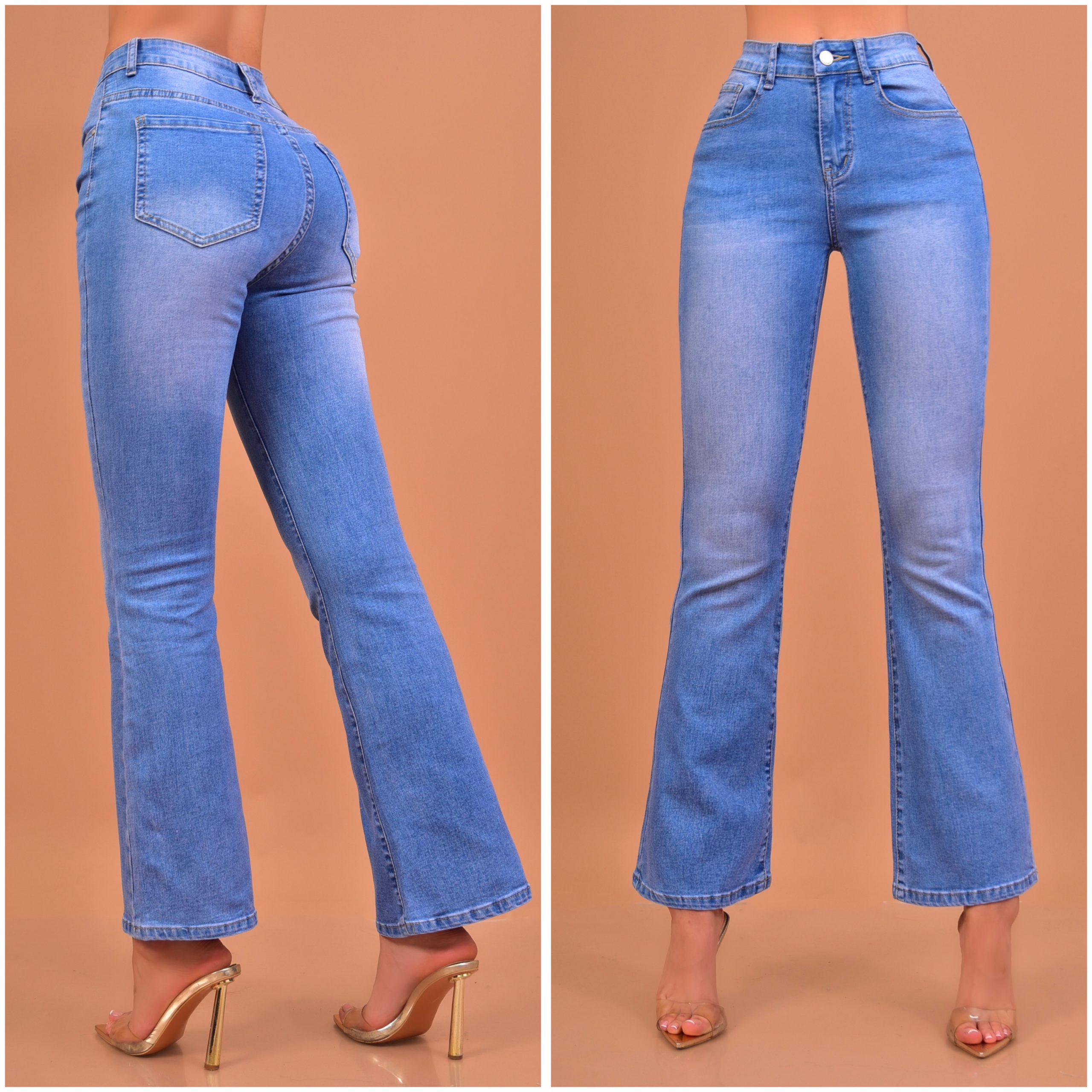 Jeans de mezclilla de corte ajustado en la parte superior y con un ligero acampanado en la parte baja. Diseño de tiro alto que estiliza la figura y alarga las piernas. Mezclilla de alta calidad suave y flexible, que se adapta cómodamente al cuerpo. Push up. 🆙 🍑