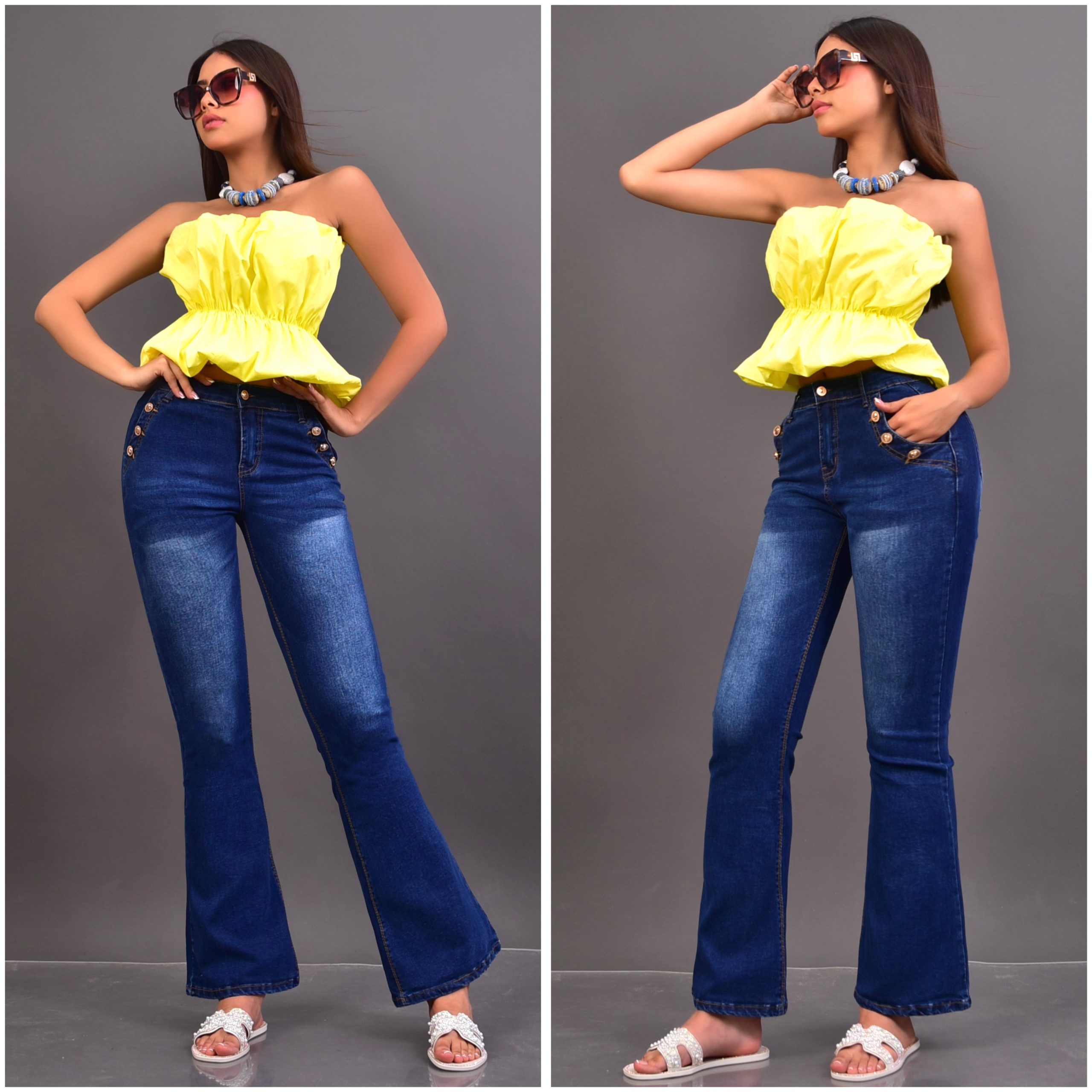 Jeans marca Boteli corte flare con detalles de botones dorados en las bolsas. Súper push-up 🆙🍑 y stretch. Diseñados para realzar la figura y brindar un ajuste perfecto.