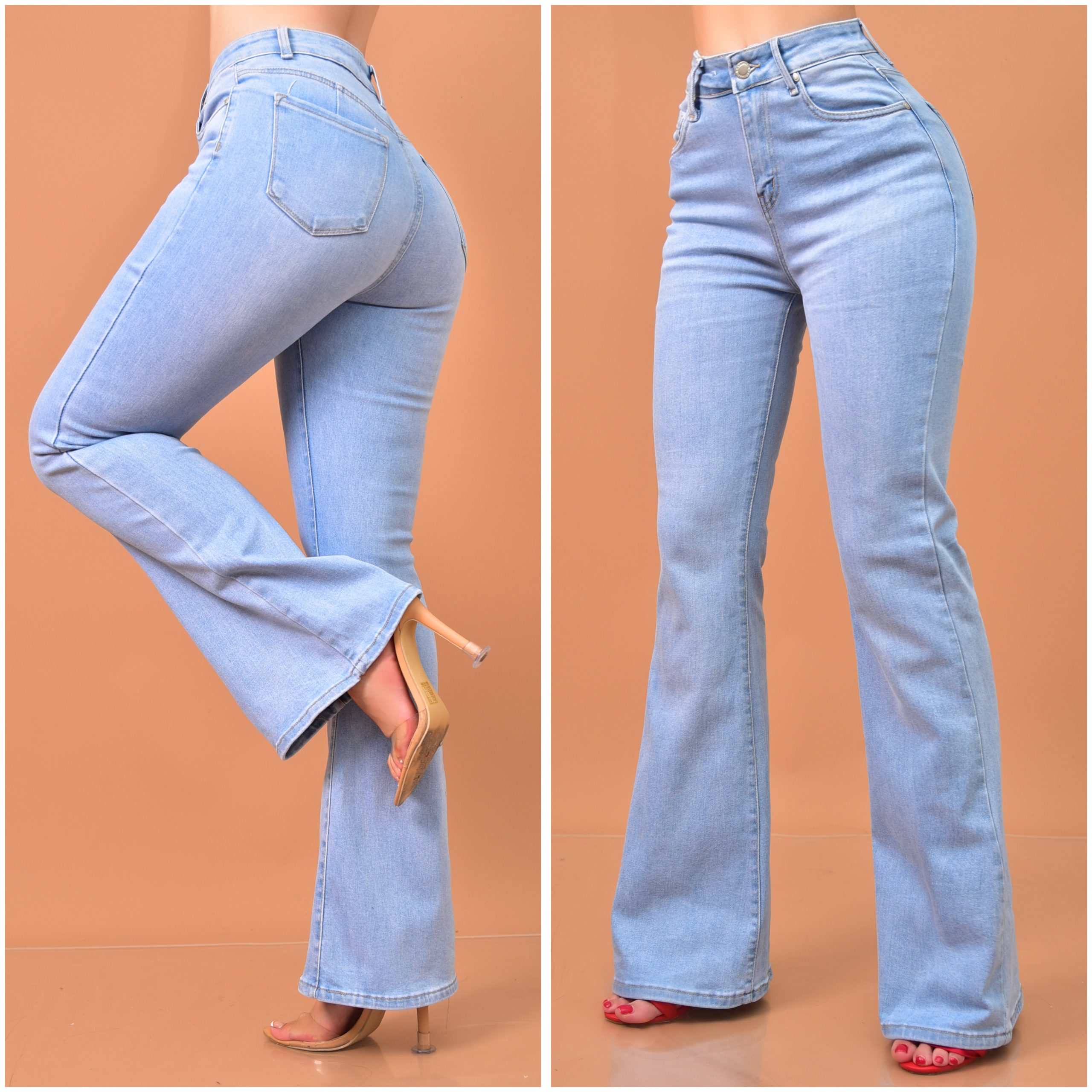 Jeans acampanados de mezclilla semi stretch. Tiro alto que estiliza la cintura. Bolsillo frontales y traseros funcionales. Corte flare que estiliza y alarga la silueta. Un básico imprescindible.