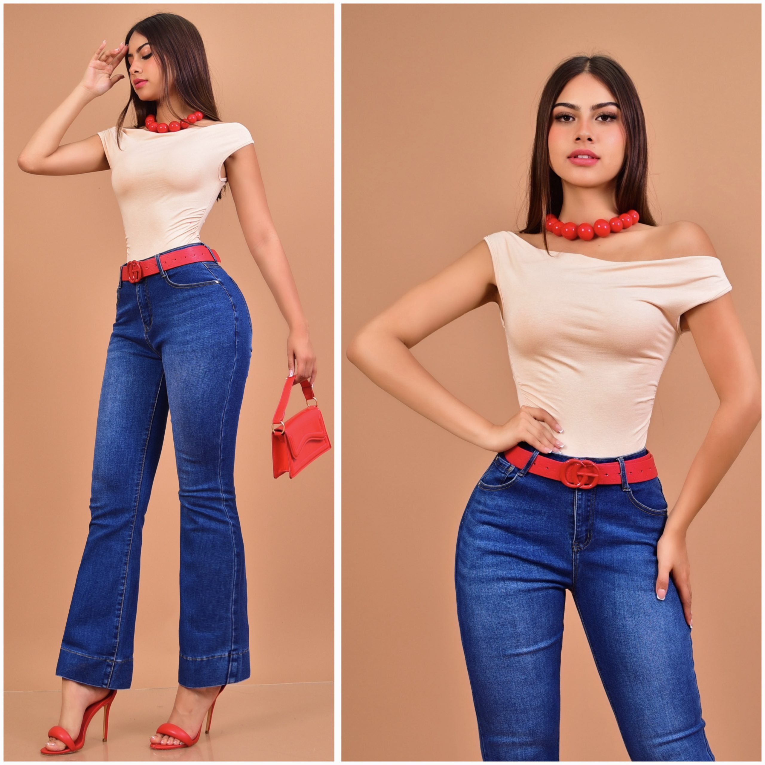 Jeans de mezclilla de corte ajustado en la parte superior y con un ligero acampanado en la parte baja (estilo bootcut o flare) Mezclilla de alta calidad. Stretch. Push up. 🆙 🍑