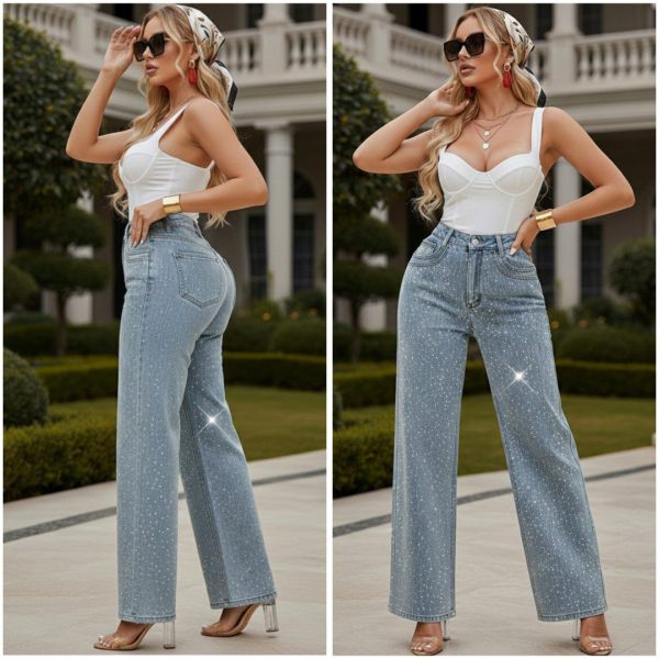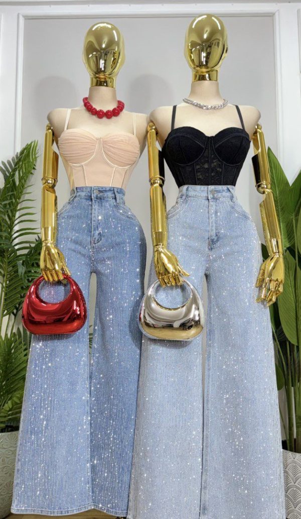 🤍🪩 JEANS WIDE LEG CON BRILLOS